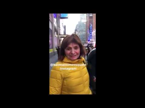 03-11-2019 Patricia Bullrich se encontró con Batman de Times Square y entonó el hit kirchnerista 'Vamos a volver'