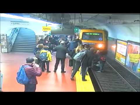17-10-2019 MOMENTOS DE TENSIÓN!!! Un hombre se desmayó y tiró a una mujer a las vías del subte porteño cuando llegaba una formación a la estación